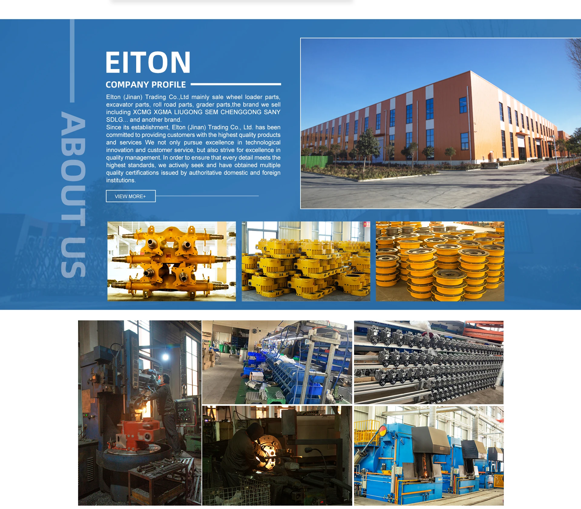 Principais produtos:Acessórios para carregadores, acessórios para motoniveladoras, acessórios para escavadeira, acessórios para guindaste, acessórios para motor diesel